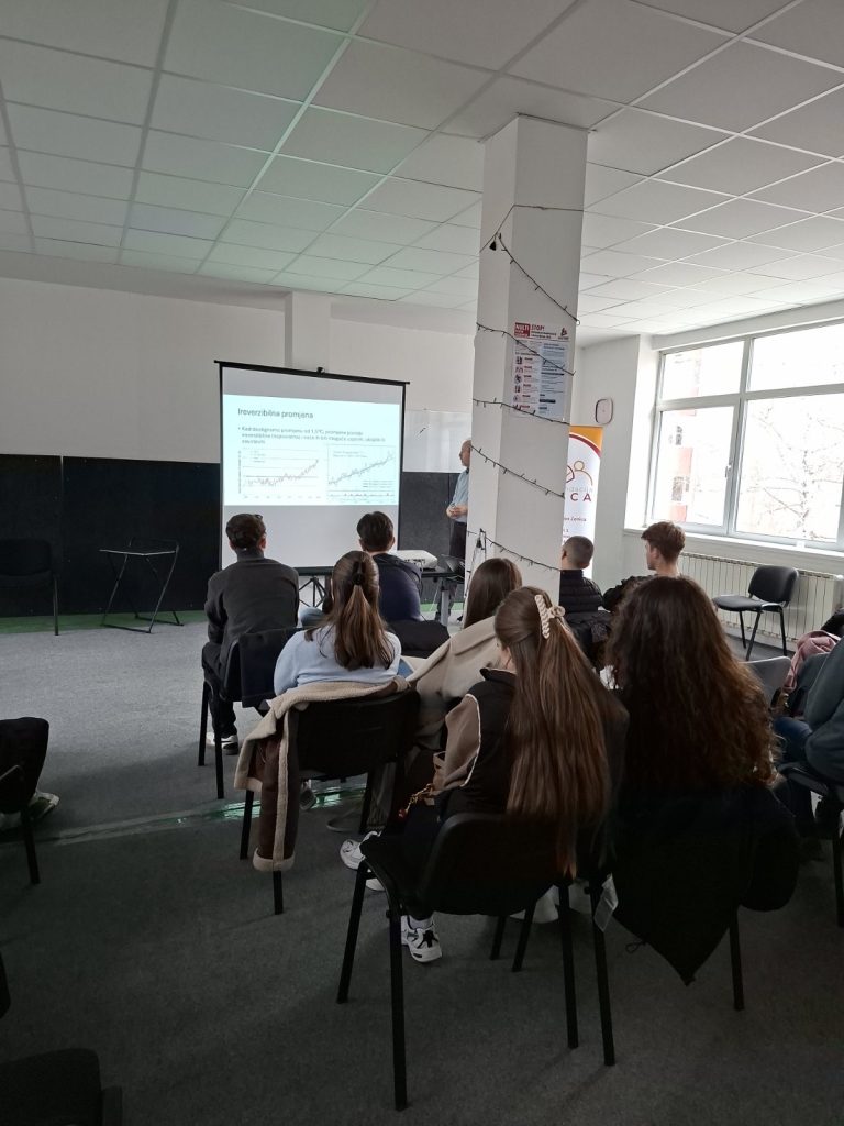 U okviru projekta „Omladinski eko lideri – Zenica diše zeleno!“, održana je edukativna radionica na temu klimatskih promjena, koja je okupila više od 40 učenika iz četiri srednje škole sa područja Zenice. Radionicu je vodio Samir Lemeš, iskusni eko aktivista, koji je učenicima približio ključne izazove i probleme vezane za klimatske promjene, ali i moguće načine djelovanja mladih u lokalnim zajednicama.